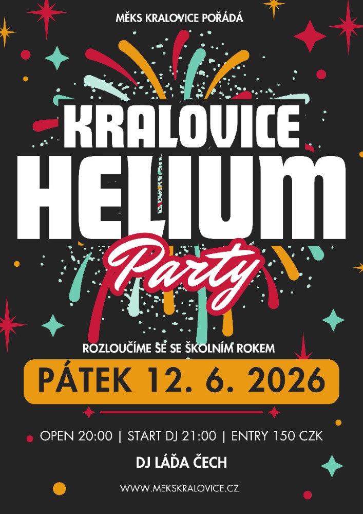 12.6.2026 21h - HELIUM PARTY - DJ LÁĎA ČECH - ROZLOUČENÍ SE SE ŠKOLNÍM ROKEM - KD KRALOVICE