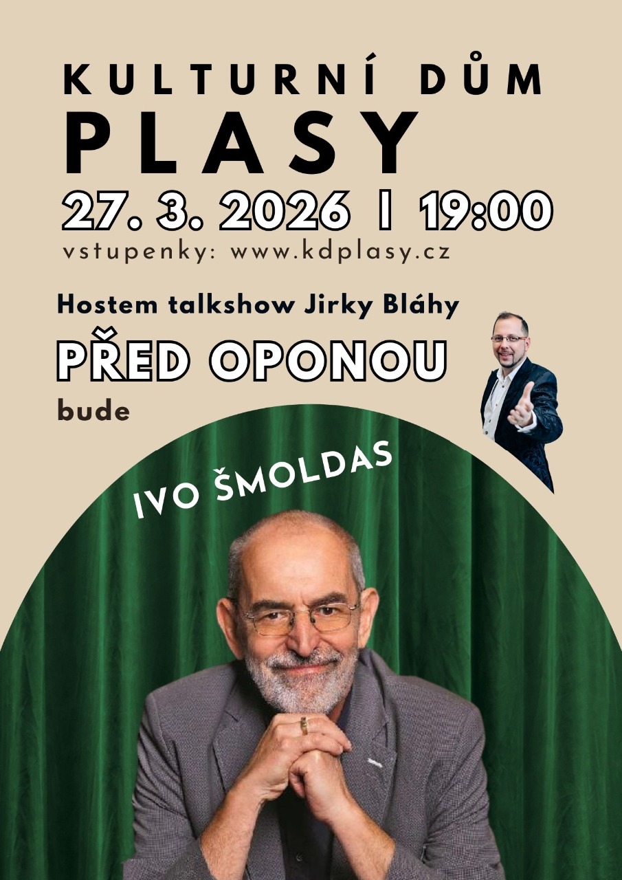 27.3.2026 19H - TALKSHOW JIRKY BLÁHY PŘED OPONOU BUDE IVO ŠMOLDAS - KD PLASY